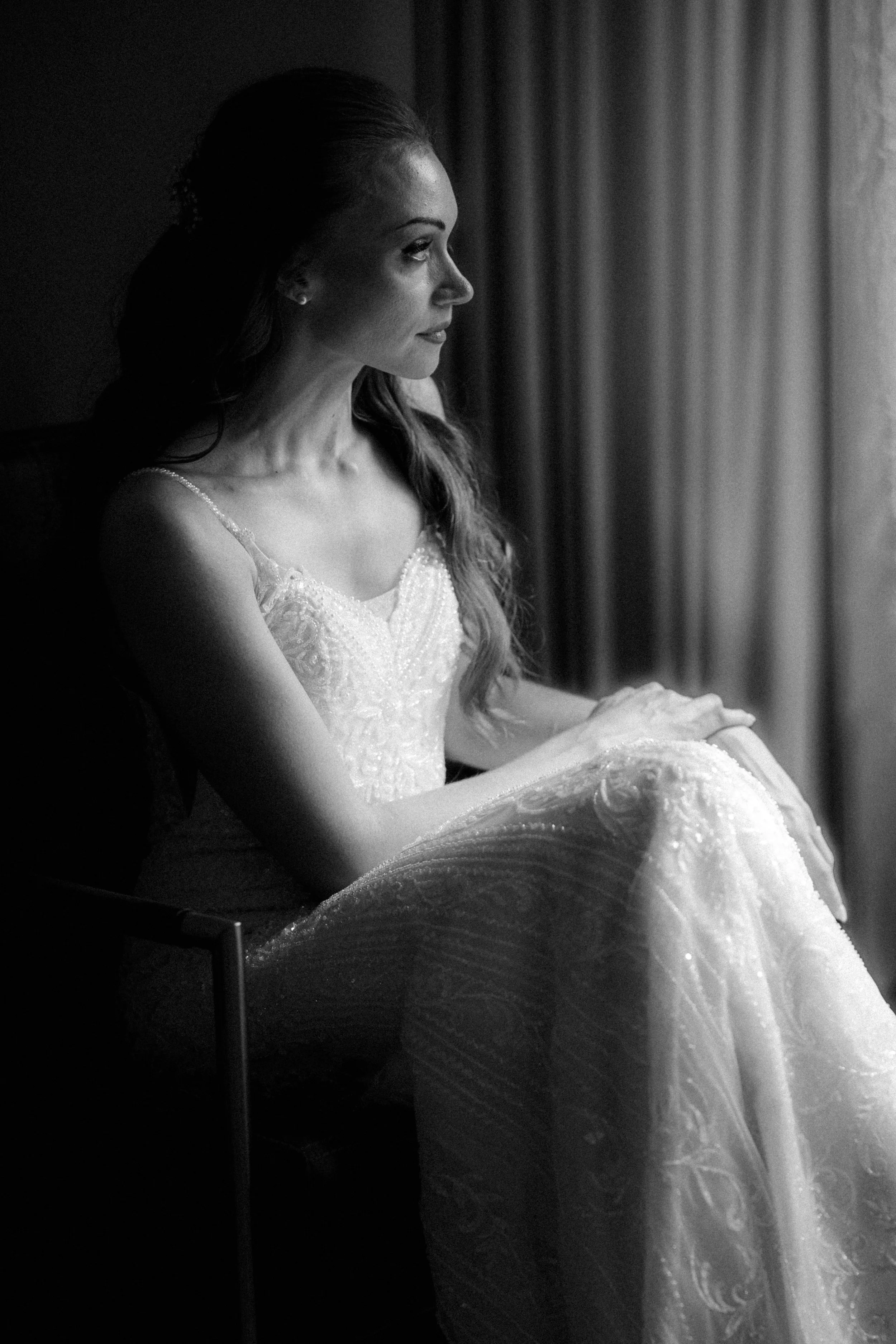 This is a black and white look built around mood, not perfection. It comes from years of photographing weddings where the quiet moments mattered more than the loud ones. The in-between, the stillness, the feeling you don’t want to lose.